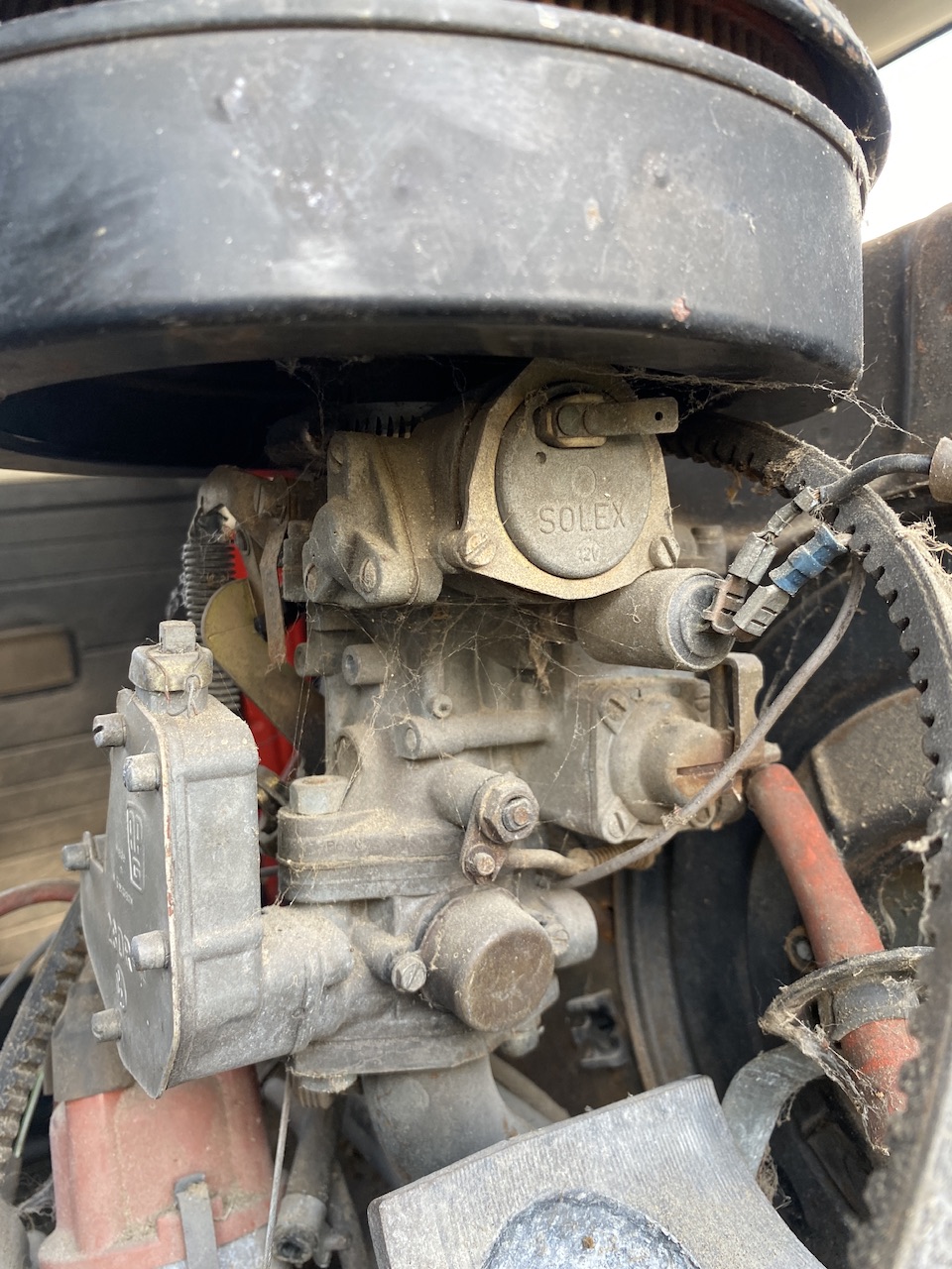 Klumpen under förgasaren är en varvtalsregulator, som går på vacuumet.