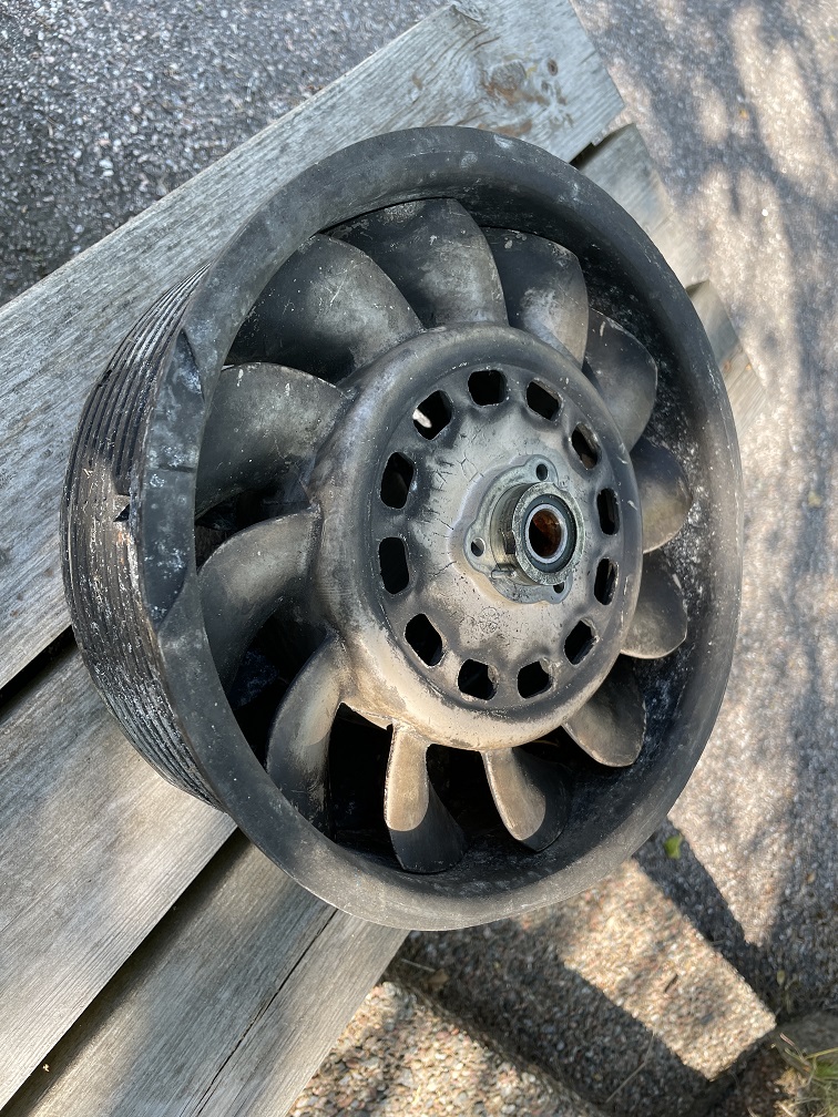 Fläkt och fläktring i magnesium, i bruks skick.