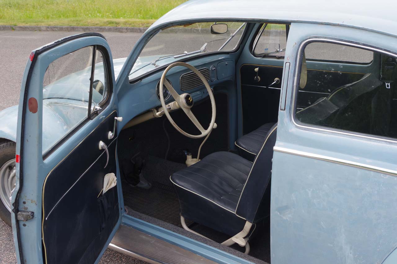 Det finns bucklor i framskärmarna, på taket som mer känns än syns, i vänster dörröppning och bakom höger dörr.