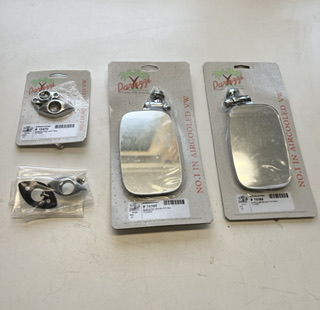 2st backspeglar med monteringssatser till Karmann Ghia 08.1965 och framåt säljes. Nya i förpackning från Paruzzi.