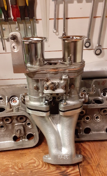 Och ja det är fajs insug med ett par gamla weber på. Hade helst haft ett par raka insug men de jag har är matchade med andra toppar så fick bli dessa. Intressant att se hur de går.