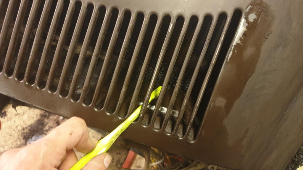 När jag tog bort färg bakom gallret körde jag med en nerslipad tandborste. Gick förvånansvärt enkelt.