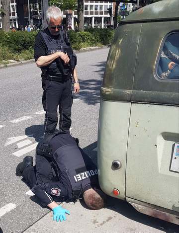 Här har vi några Tyska konstaplar som blivit intresserade av Demians barndoor. ICQ/ag