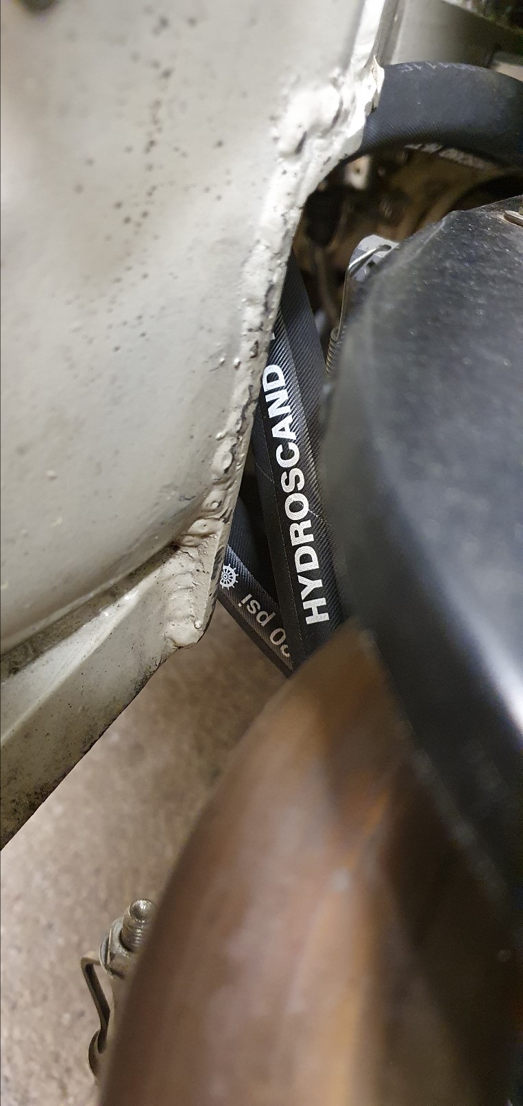 Det är högtrycksslang oljeslang som är lindat med alu.belagt avgasbandage för att förhindra den värsta värmestrålningen från avgassystemet.
