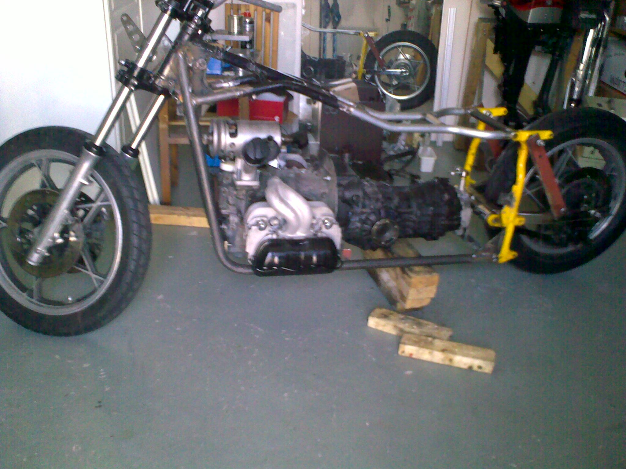 Tanken är ett hembygge, rymmer bara 21 liter pga den stora tunneln i tanken-se bilden på ramen.