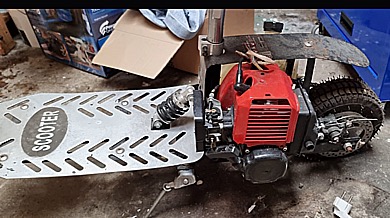 En bensindriven kickbike/spark.   ICQ/bi