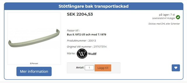 Bakre kofångaren utskuren bit under för drag. Syns ej när den sitter monterad.