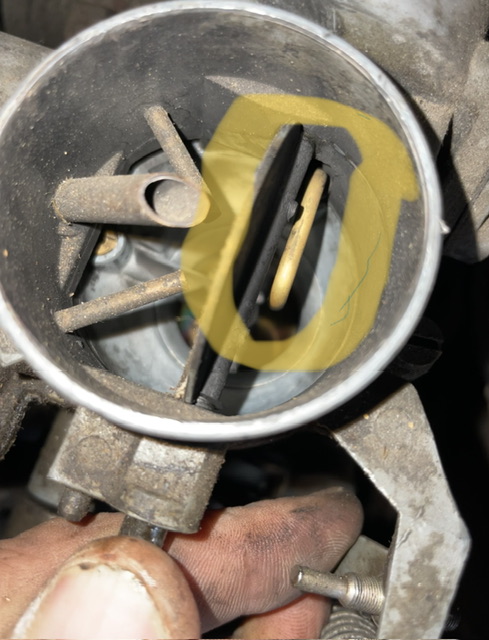 Sedan bakslag i pannrummet. Den gick inte att starta när jag skulle köra in den så jag körde in bilen med vinsch. Den har varit lynnig å jag felsökte. Hittade ett fel…. röret till accpumpen sitter inte kvar i förgasaren! Fan!