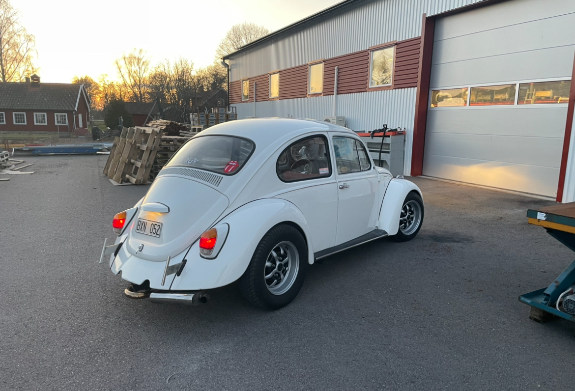 Tog ett litet ryck och nu är den klar för besiktning. Tryckte i ett nytt rör i förgasaren å service olja å nya stift å nu går den. Bytte hjul till KPZ och med 1500 låda med 205/70 -15 bak går den med väldigt lågt varv. Fyran är nästan överväxel!