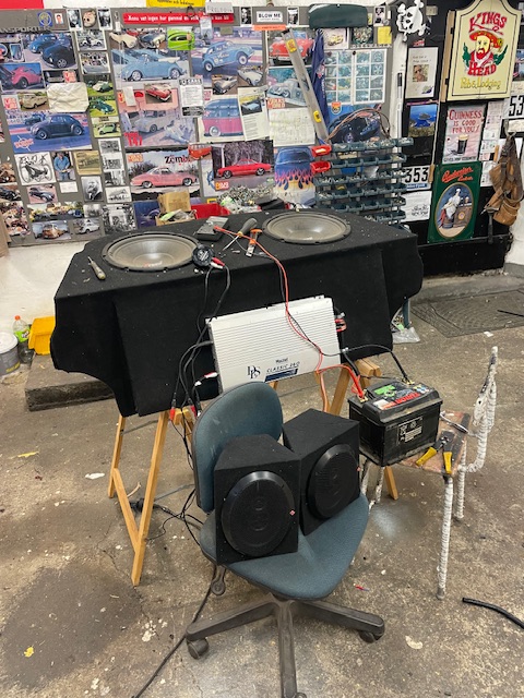 Test av stereo i går. Basarna låter skit och en kanal trasig på gamla Bettan. Blir att skaffa bättre prylar.
