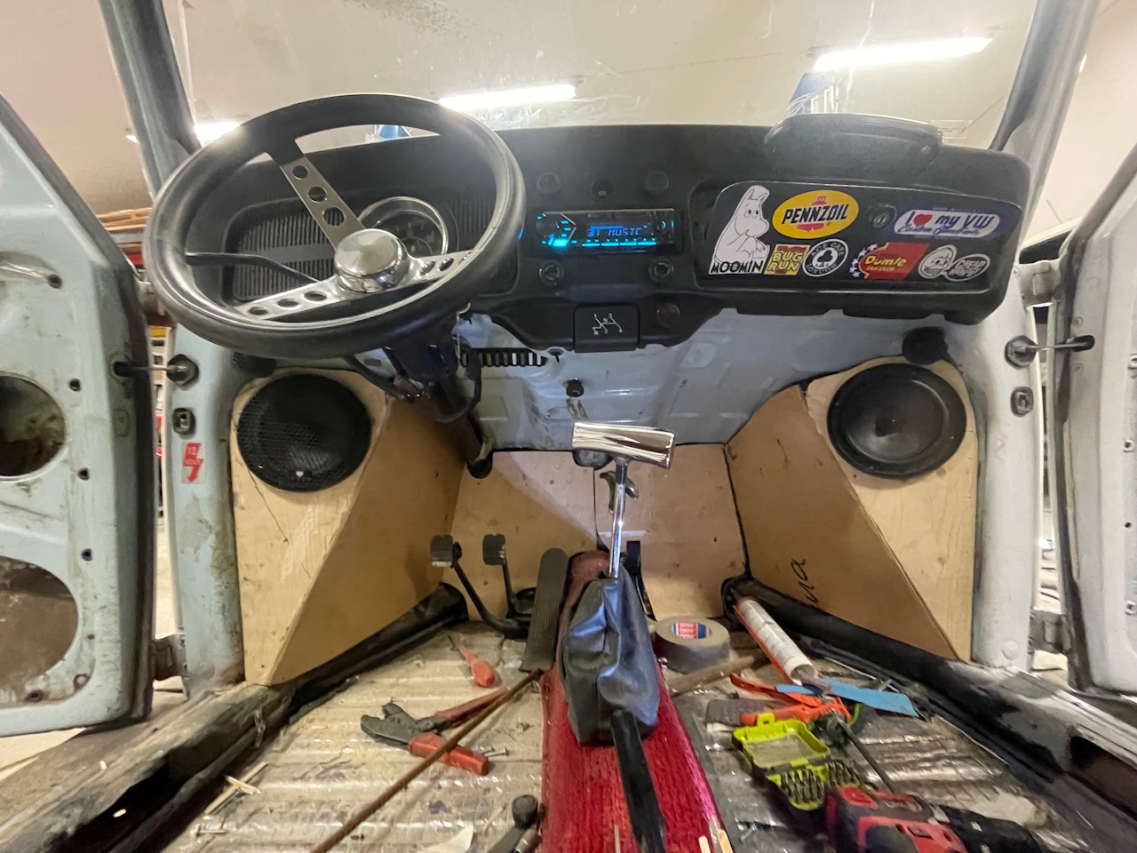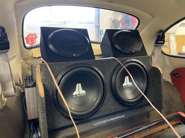 Galet tryck men diskanterna var väl inte av bästa kvalitet. Ska även modda kickpanelerna lite då det blir lite trångt för fötterna sedan ska det även tätas ordentligt och matta ska i. Måste först måla vitt där det nu är blått men det kommer jag fixa med i sommar.