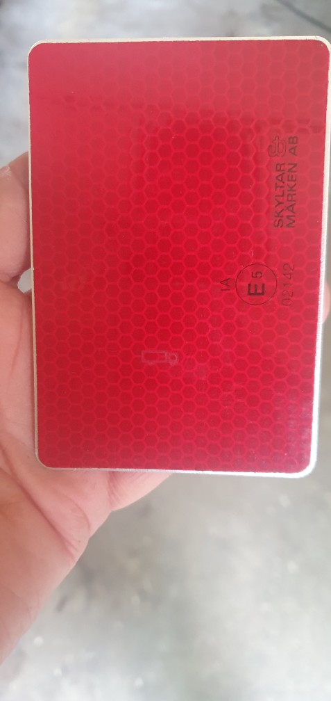 Nej jag insåg det ganska snart, men det näst bästa alternativet skulle isf vara dekaler/plastbitar i ett format som skulle passa min applikation, men inte heller det verkar finnas. Så jag lutar åt att använda mig av "besiktningsreflexer" som jag gjorde nu, naglade med varsitt buntband i "nätet" i stötfångaren nertill, klippa buntbandet och förvara dem i handskfacket till nästa besiktning. Och däremellan köra med synliga, fullt reflekterande och funktionsdugliga, ej E-märkta reflexer på önskad plats (enligt bild).