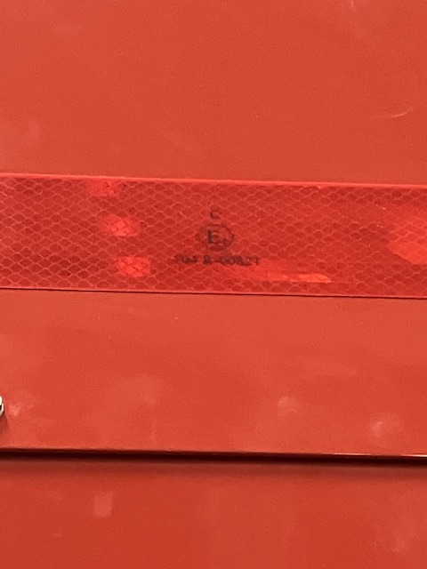 På jobbet har vi reflex material i div färger..som bla sätt på polisbilar.. när jag hade klistrat dylikt rött på mitt släp fick jag anmärkning, eftersom det inte var E märkt.. fick handla  nya märkta.. med E..