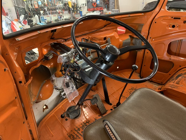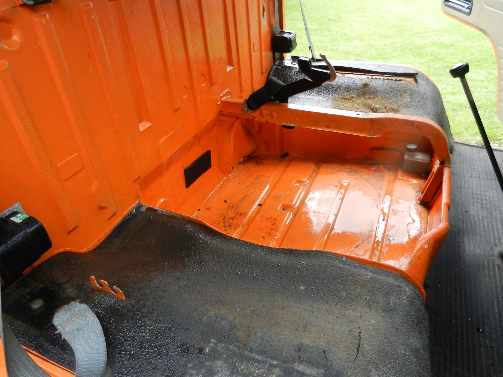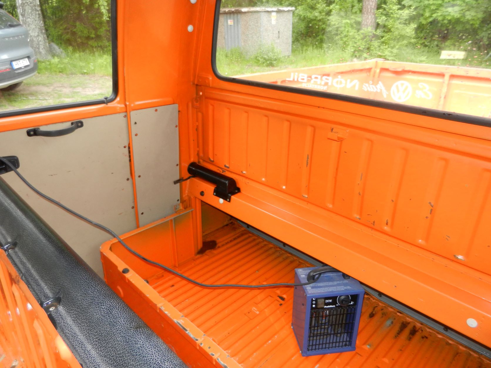 I våras startade tillsnyggningen av Dubbelhytten. Den har stått utan motor under perioden 1983 - 2020 så karossen är i väldigt gott skick och med väldigt få skador. Dessvärre så var ju rostskyddet och lackeringen av dessa bilar enklast tänkbara, så en mängd stenskott mm hade satt sina spår. Den hade under en ganska kort period även stått utomhus, vilket den klarat ganska bra, men bakre flaklämmen var dålig. Förmodligen har regnvatten runnit under den vilket har gjort att den rostat. Den fick bytas mot en ny, som av någon märklig anledning var 15 mm kortare än den gamla. Nu har minsta antydan till rost åtgärdats, vilket är ett omfattande arbete även på en bil som i det närmaste kan sägas ha varit rostfri. Lite rost på höger bakskärm, lite vid fotstegen och även lite på golvet vid förarplatsen, men inte mycket mer. Men som sagt, bilen saknar i princip rostskydd.
