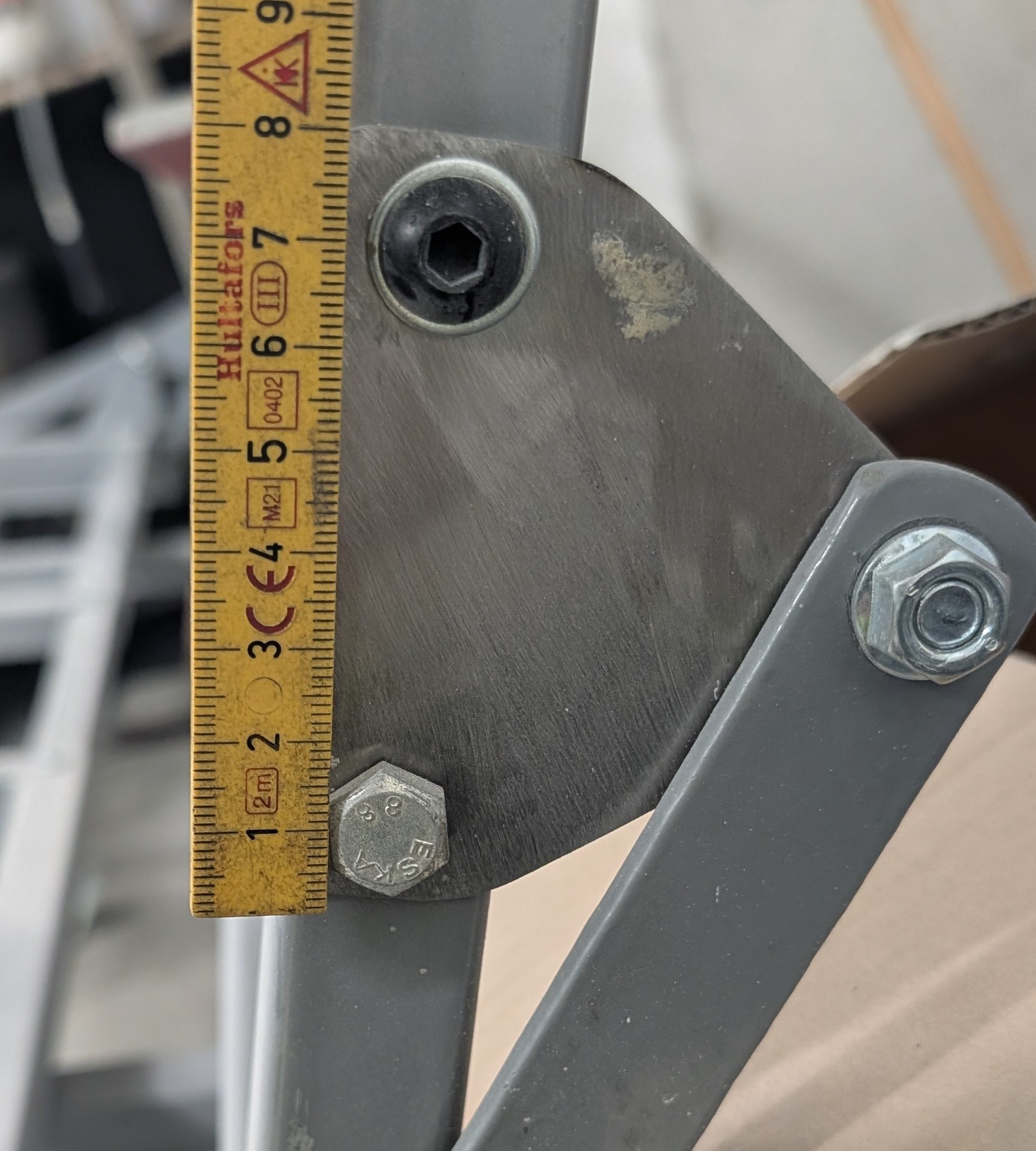har tyvärr ingen "före" bild men man se den gamla vinkeln på staget. staget satt där den svarta skruven sitter. får köpa lite matchande skruvar så det ser lika ut överallt.