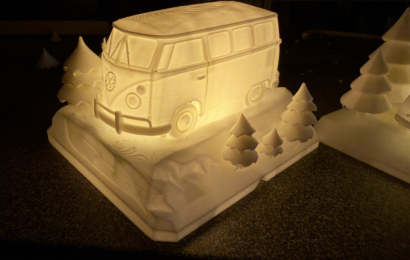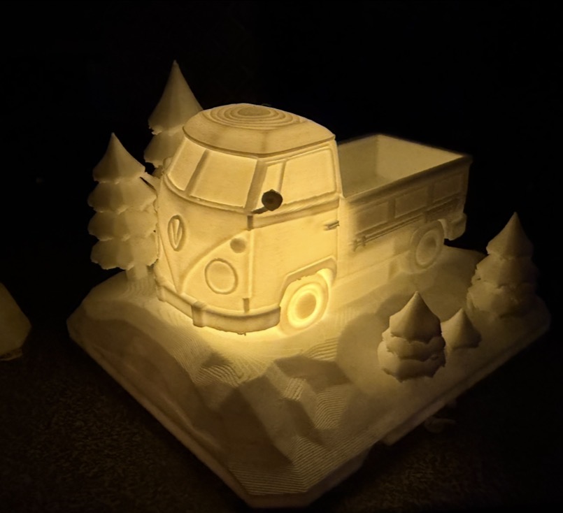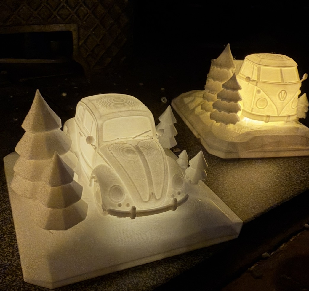 Men jag är nörd/expert på additiv tillverkning och varje år blir det lite roliga jul designs, i år blev det lite dioraman med bl.a VW motiv..