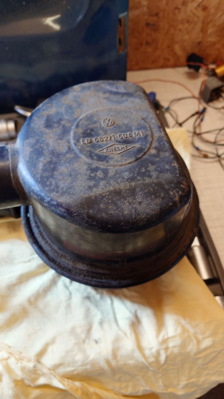 Letar desperat efter ett oljebadsfilter till min Earlybay Pickup med 1600-motor. Jag har armen och innerburken, men själva oljebehållaren och eventuellt flera delar kom inte med bilen... Se bild.