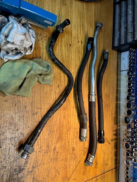 . Fick oxå nog av glasfiberbandet runt grenrören och eftersom jag ändå måste lossa på förarsidans rör för att komma åt oljeanslutningen på blocket, var det lika bra att plocka ner alltihop och riva av fiberbandet. Där försvann 800 gram