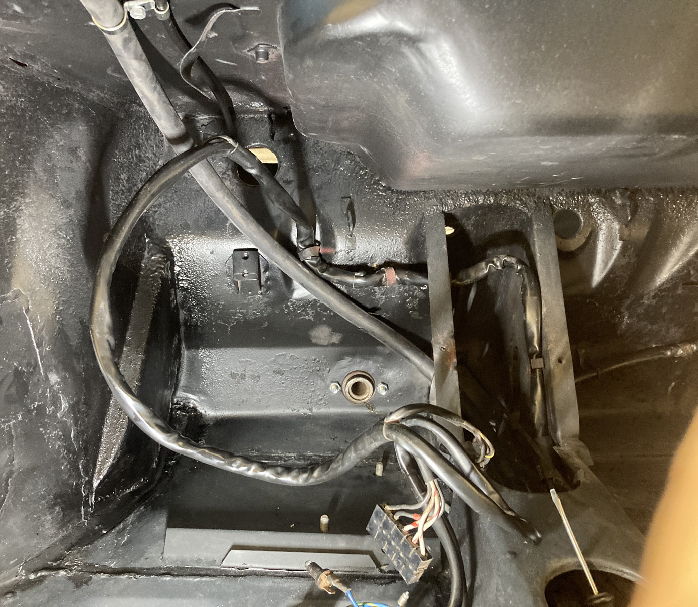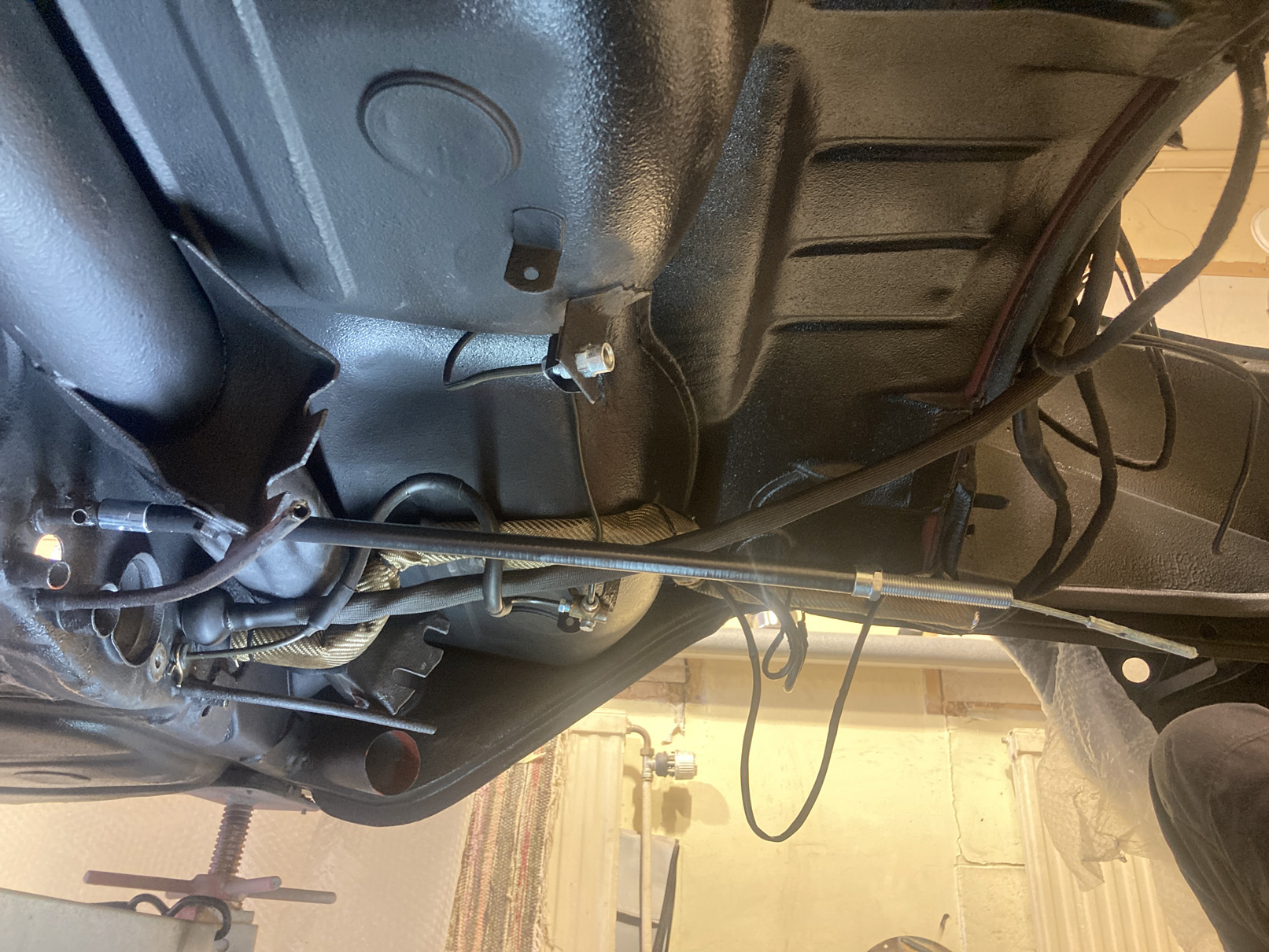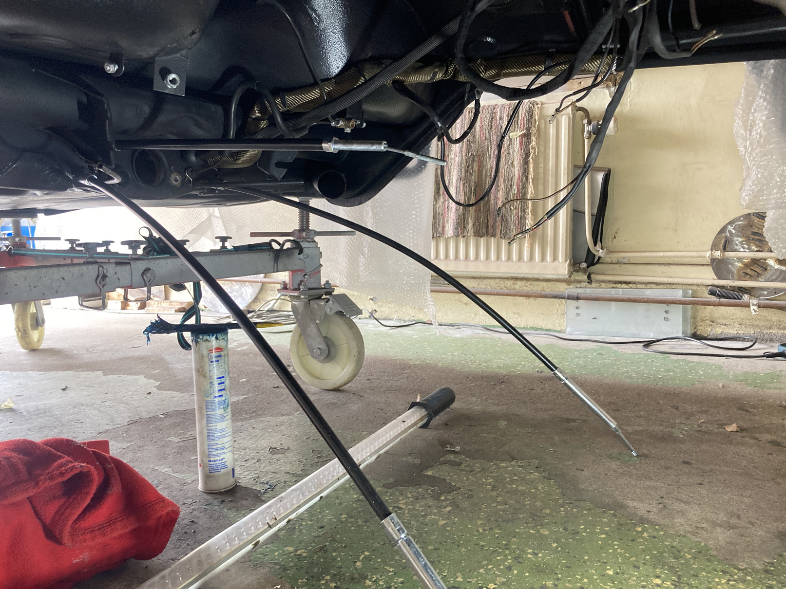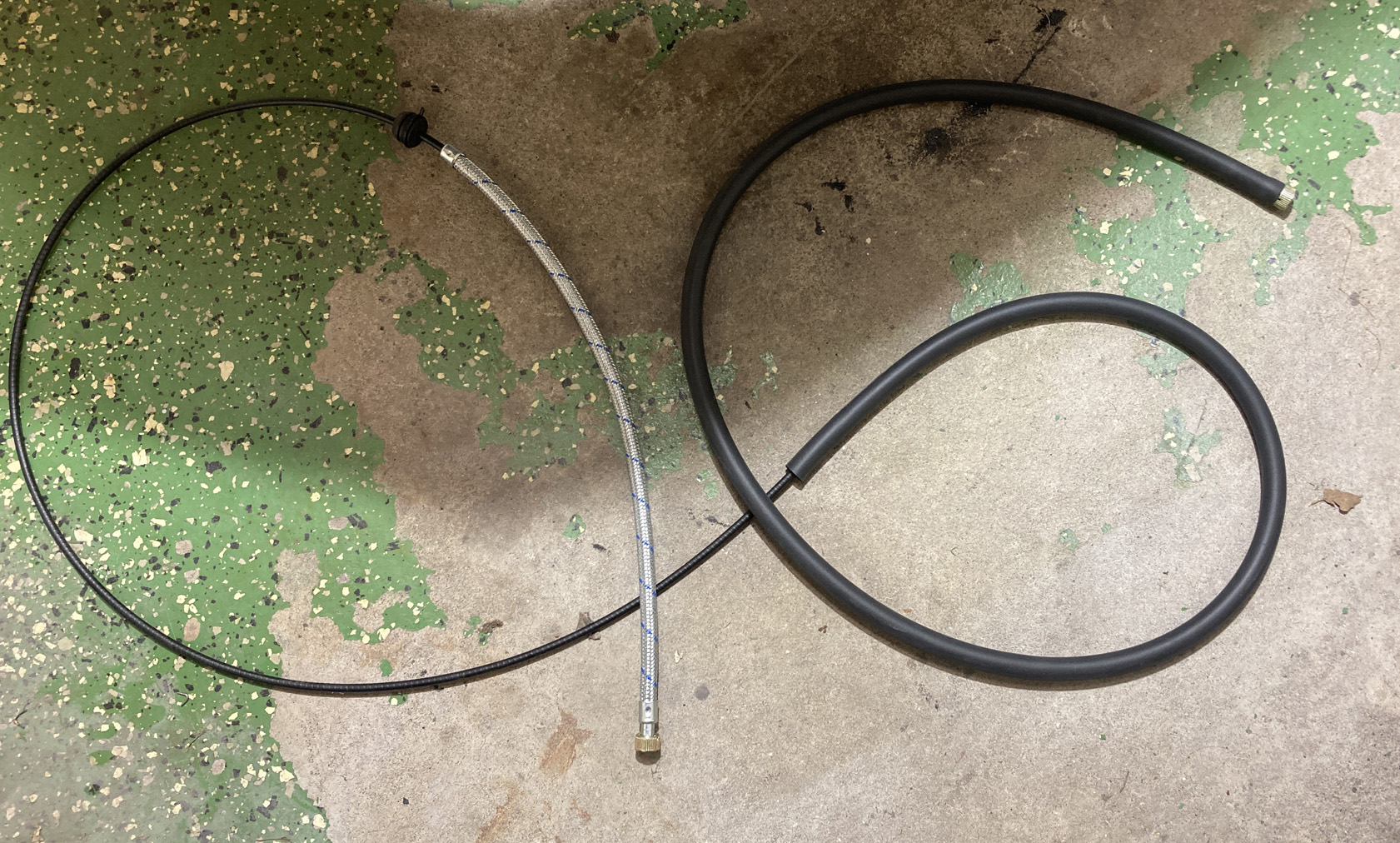 Fortsätter på temat, rör-kablar-vajrar. Det är mekanisk varvräknare på dessa bilar så det ska till en vajer hela vägen genom bilen. Hastighetsmätaren drivs av vänster framhjul.