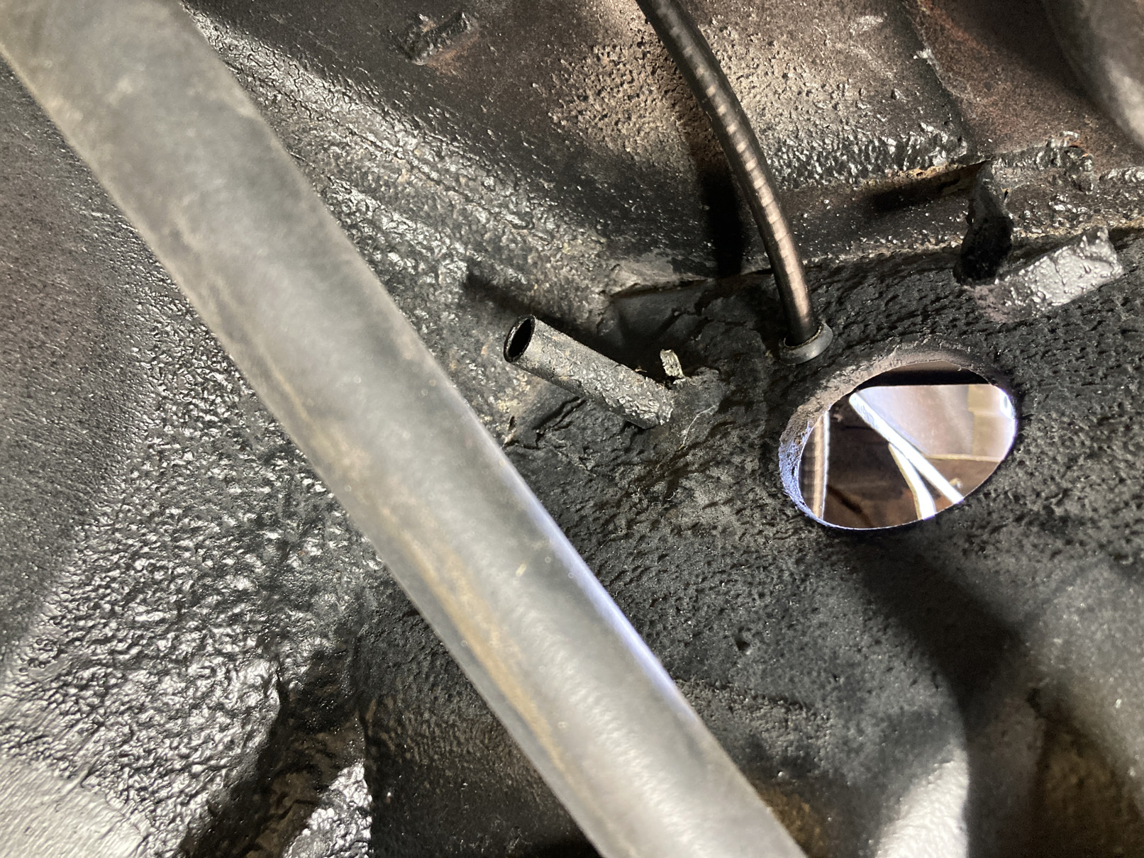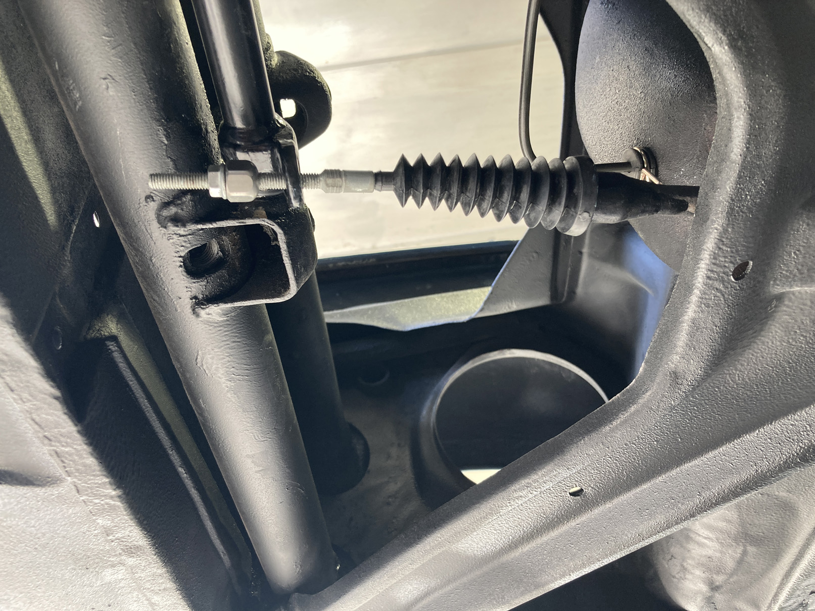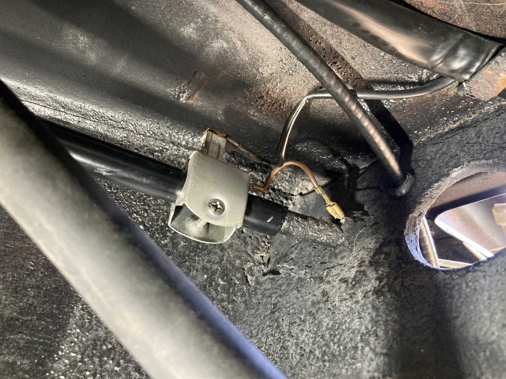 Fortsätter på temat, rör-kablar-vajrar. Det är mekanisk varvräknare på dessa bilar så det ska till en vajer hela vägen genom bilen. Hastighetsmätaren drivs av vänster framhjul.