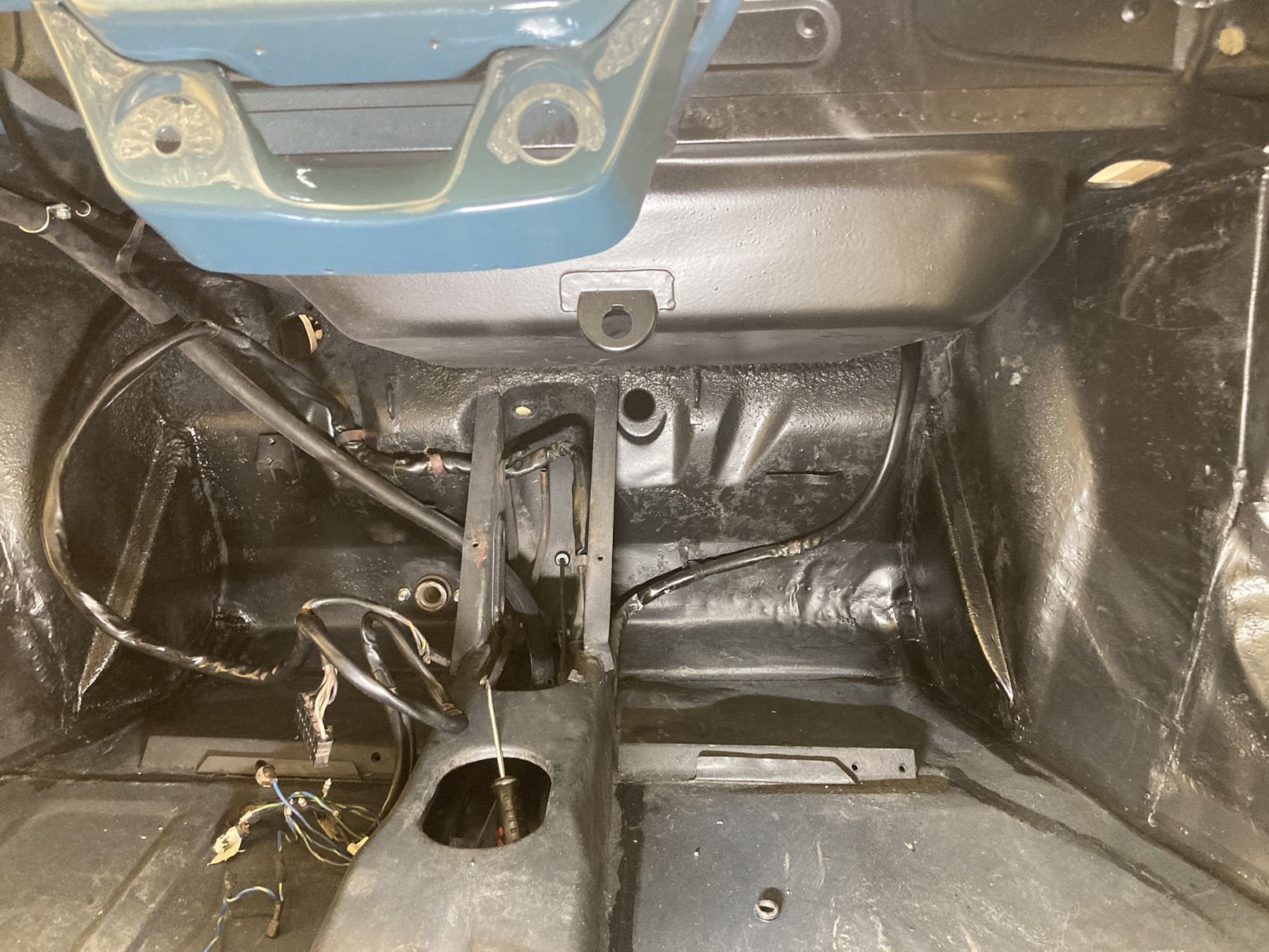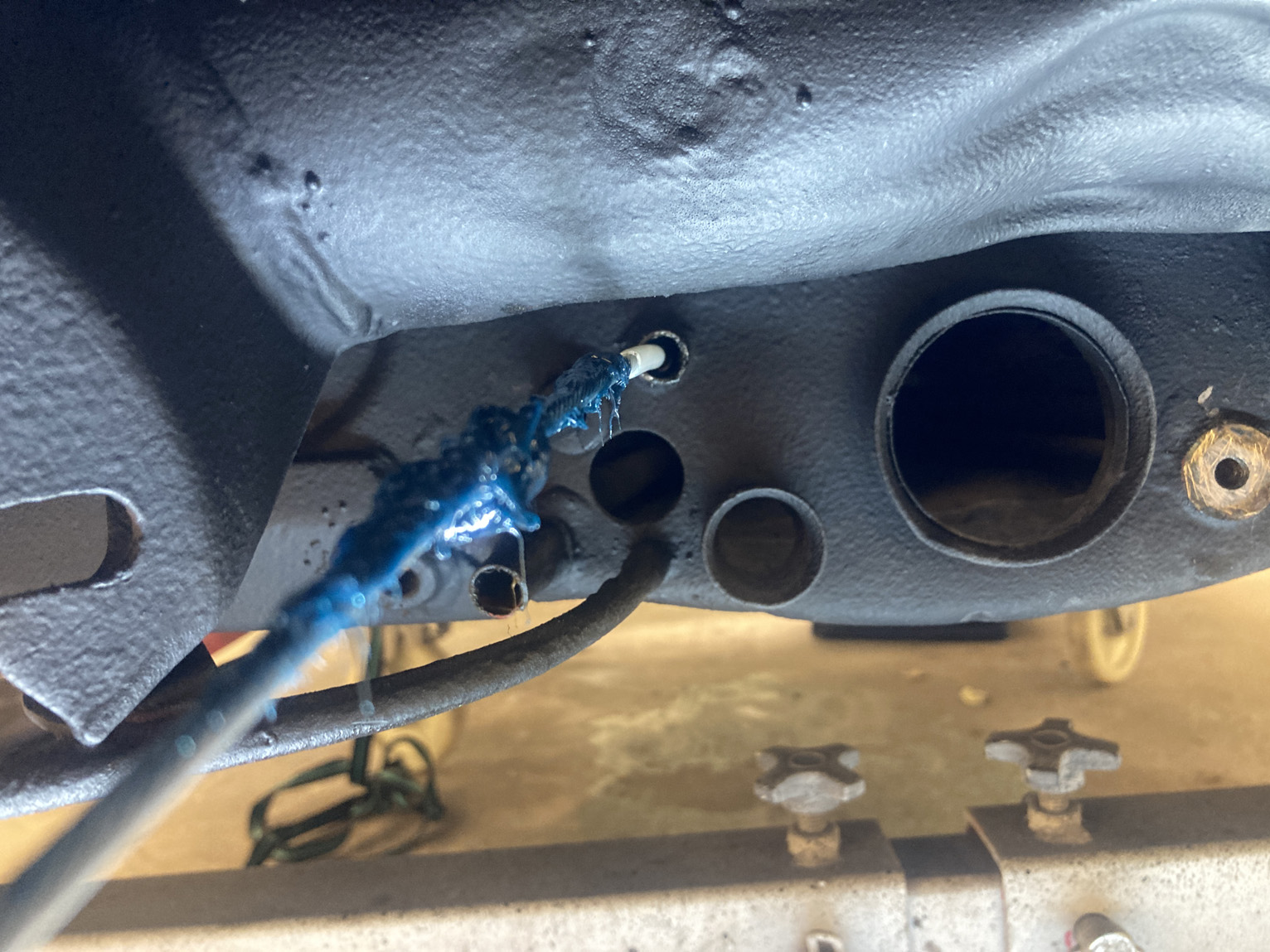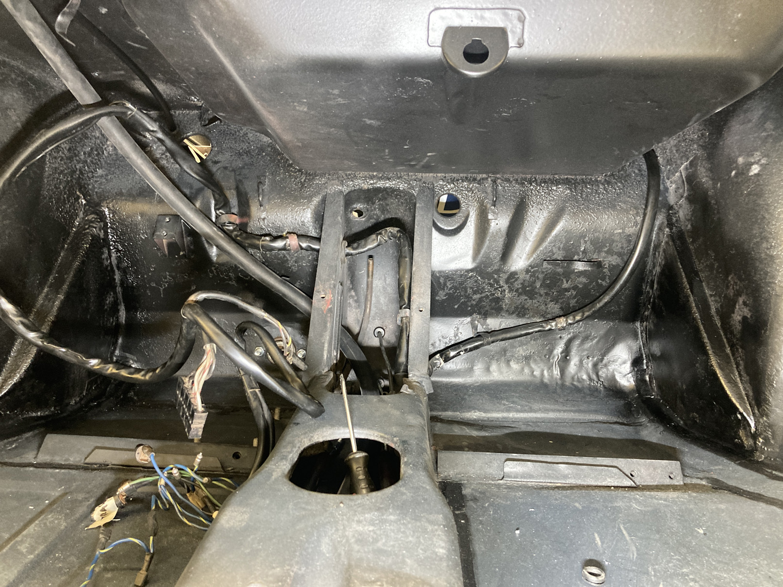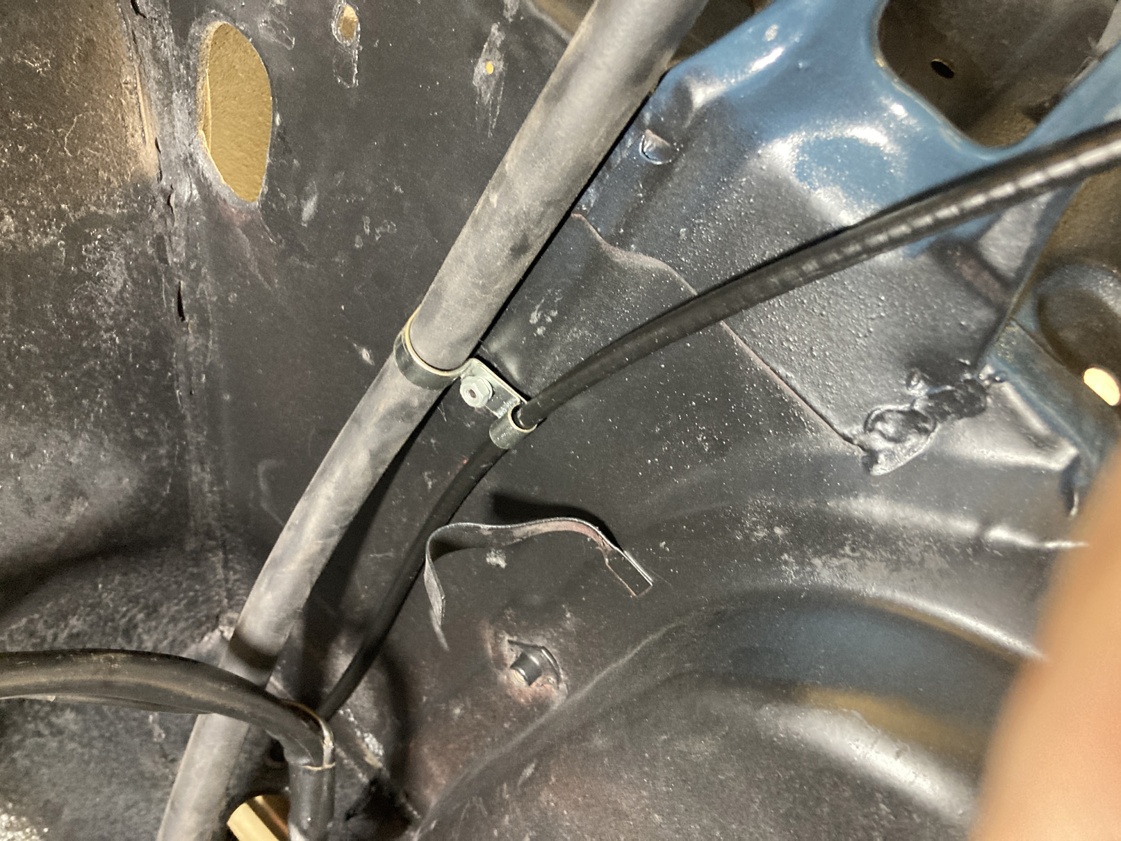 Fortsätter på temat, rör-kablar-vajrar. Det är mekanisk varvräknare på dessa bilar så det ska till en vajer hela vägen genom bilen. Hastighetsmätaren drivs av vänster framhjul.