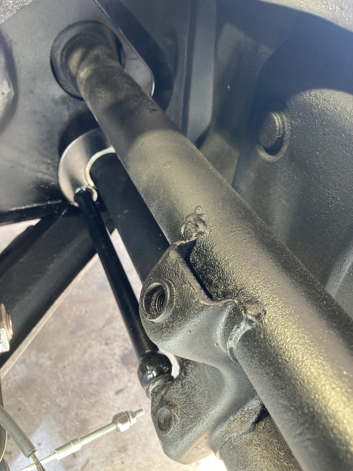 Här ser ni hävarmen som sitter i främre underredet på vänstersidan.