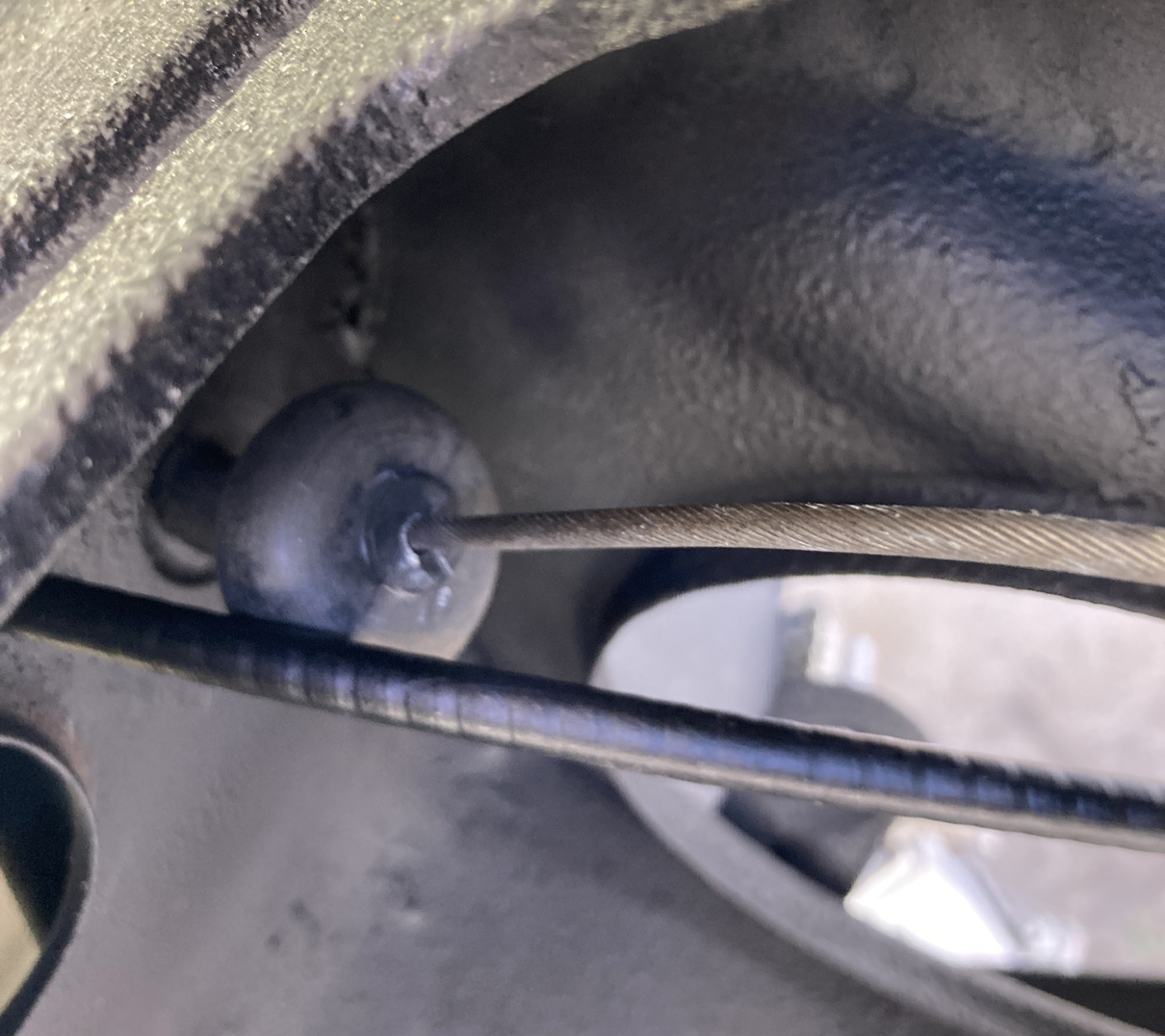 Båda vajrarna hålls på plats av varsitt metallclips. Så här ser det ut nu när inget är finjusterat.