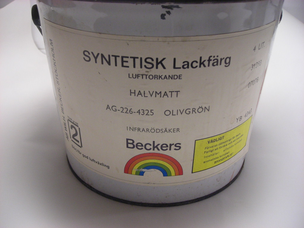 Militärgrön infrarödsäker Default/yikes  syntetfärg från gammalt färglager 4L + en några liter från en öppnad burk. 300.-
