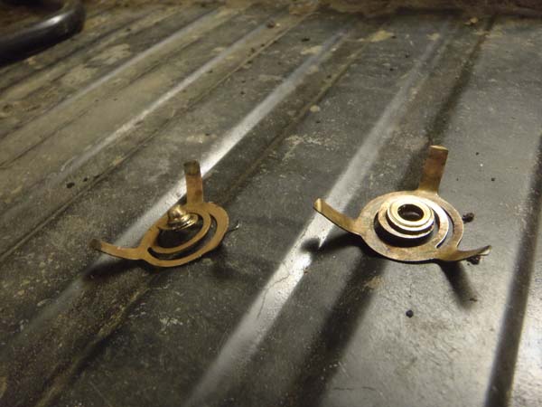 Lossade centrum muttrarna och inne i fett kopparna fanns mässing mojänger spiralformade.